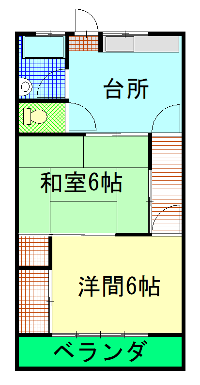 | 間取 | 1DK( DK 洋室6畳 和室6畳 ) |