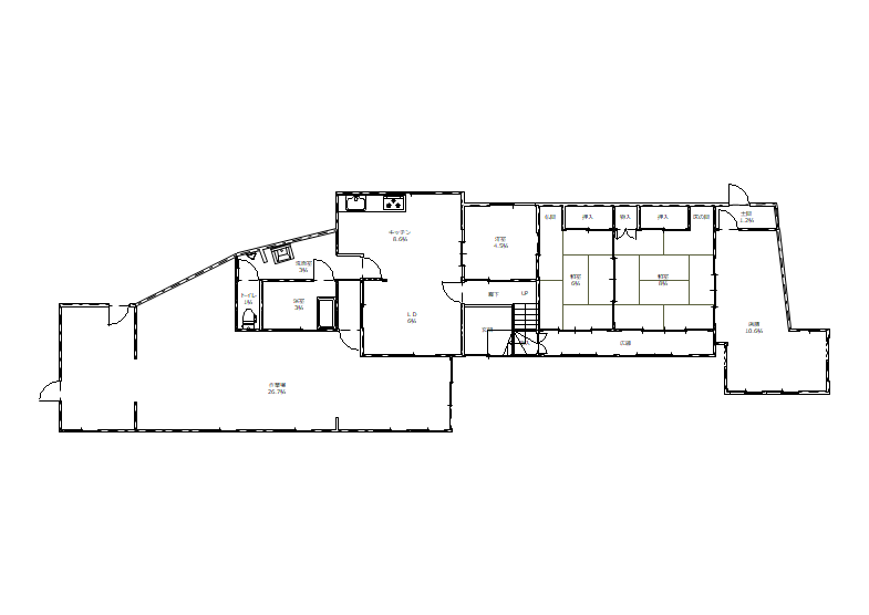 | 間取 | 6LDK 1階:和8帖、和6帖、和4.5帖、LDK14.6帖、作業場26.7帖、店舗10.6帖、2階:和7.5帖、洋9.8帖、洋6.5帖、倉庫5.9帖 |