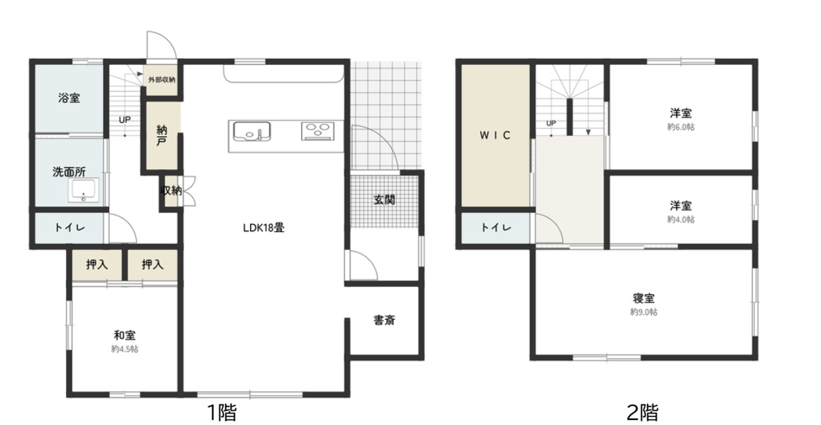 | 間取 | 3SLDK( 和室4.5畳 1階 洋室4畳 2階 洋室6畳 2階 洋室9畳 2階 LDK18畳 1階 S2畳 1階 ) |